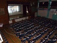 3月16日(月)3年生 卒業お祝いムービー鑑賞会1時間目の3年生は、体育館で「卒...