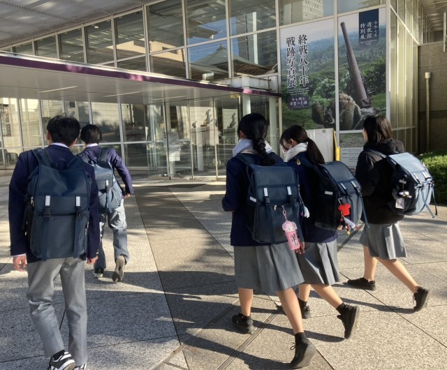 2年生は最初の見学地である、遊就館や平和祈念展示資料館を見学しています。