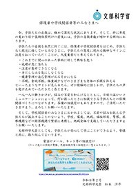 文部科学大臣より、年度の変わり目が近づく時期にあたり、以下のとおり生徒・保護者・学校関係者に向けたメッセージがありましたので、お知らせします。