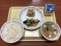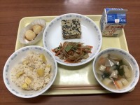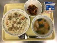 牛乳 大豆とひじきのおこわ 菊花肉団子 菊と小松菜のすまし汁エネルギー799ka...