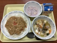 牛乳 担々丼 豆腐スープ ブルーベリーヨーグルトエネルギー795kacl &nb...