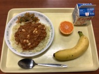 牛乳 チリビーンズライス 手作り福神漬け バナナ 菊花みかんエネルギー835kc...