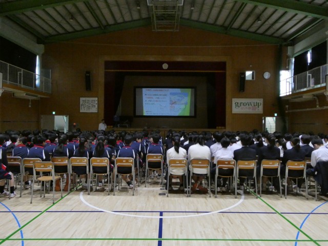 7月22日・水曜日から24日・金曜日に実施の2年林間学校に向けて事前の学習を体育館で行っています。