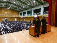 午前の種目の最後は、3年生ソーラン節です。昨年度の2年生から練習を重ねてきました。前から見ているとさすがの動きですが、後の生徒の動きも迫力があり堂々としていました。3年生の息の揃った演技で会場が盛り上がりました。そして、最後に学年の生徒が中央に集まり一斉に空高く手をあげるポーズはとてもかっこよかったです。最上級生らしさが前面に出て素晴らしかったです。