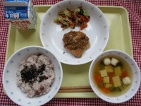 豚キムチ焼きそば 牛乳 ジャンボ揚げ餃子 フルーツポンチ