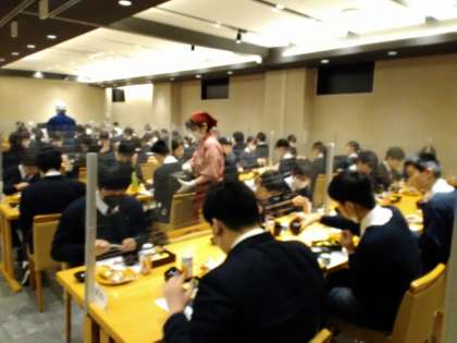 昨日は和食でしたが、今日は洋食でした。余ったオレンジジュースは男子によって争奪戦が行われました。