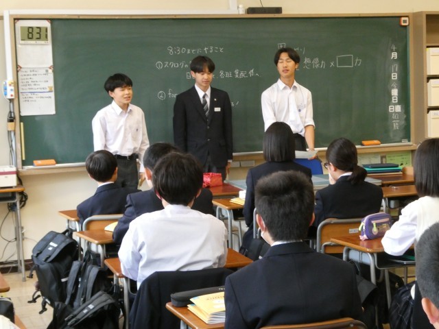 4校時に新入生歓迎会を行いました。本校は生徒数が多いので入学式に在校生はほとんど...