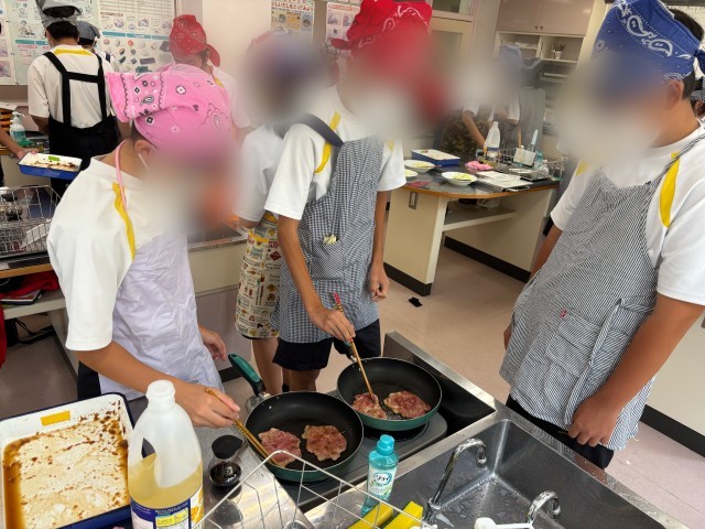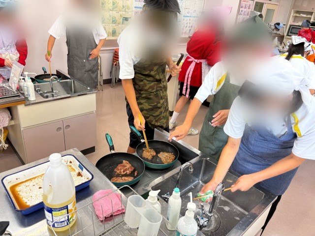 1年生家庭科 調理実習「豚の生姜焼き」