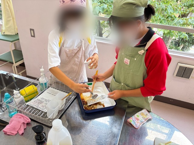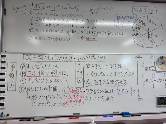 大忙しの調理実習でしたが、班の人と声をかけ合い、何とか時間内に片付けまで終えることができました。