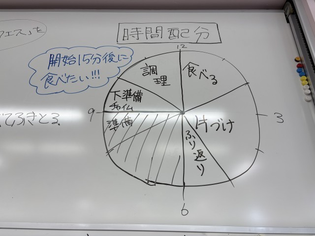 45分の授業の中で、準備をして調理し、食べて片付けをしなければなりません。