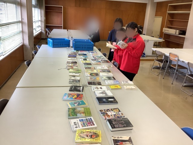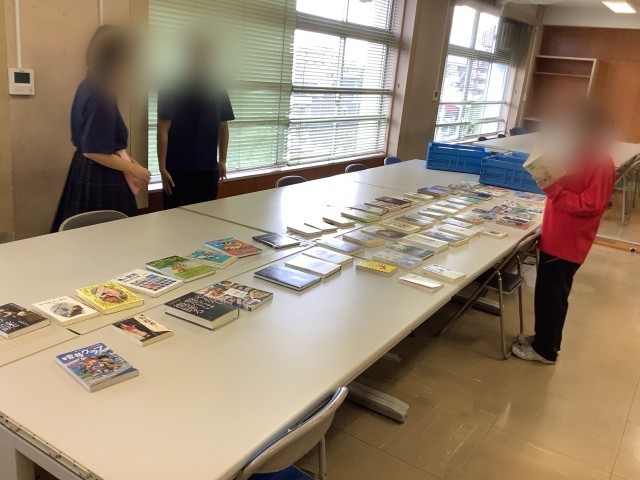そのため、図書委員が区の図書館に行き、中学生が借りたいと思う本を100冊選んで借りてきてくれて、移動図書館を開いてくれています。