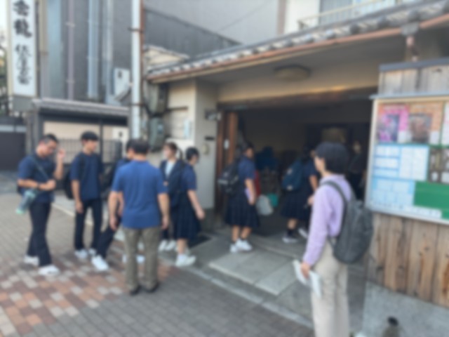 2日目の班別行動は交通の混雑もあったため予定していた見学地をカットして行動する班も多く見られました。最後は全班が河村能舞台に集まり「能」の鑑賞をしました。能楽師の舞を見ることが中心ではなく、使われている面や装束の種類や歴史、楽器に関する知識などを聞くことができました。能について学んだ上で実際の舞を見ることによって、より広い視野で能を楽しむことができました。体験の様子などはカメラマンさんに写真を撮っていただいているので、ぜひ後日見ていただければと思います。