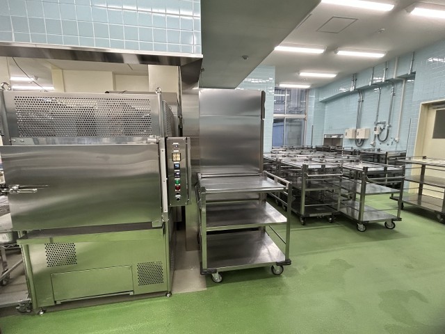 11月の最後の1週間は、使っていない食器や器具を洗い直したり、炊飯器やオーブンの試運転をしたり、新しく導入された真空冷却器を使ってみたり、と12月の給食再開に向けた作業をしていました。