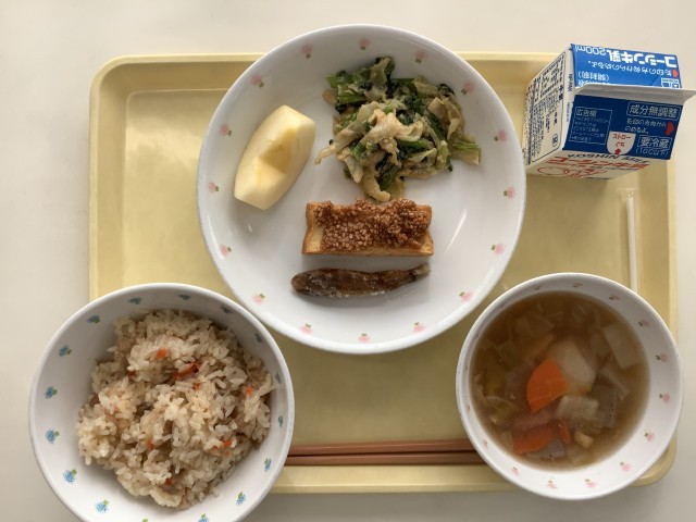 今日は「だしで味わう和食の日」のプリントを配布しましたのでご覧いただき、ご家庭でも和食について話題にしていただけると嬉しいです。