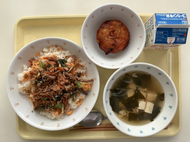 野菜や肉が入った混ぜご飯で、本場の韓国では、混ぜれば混ぜるほど美味しくなる、と言われているそうです。
