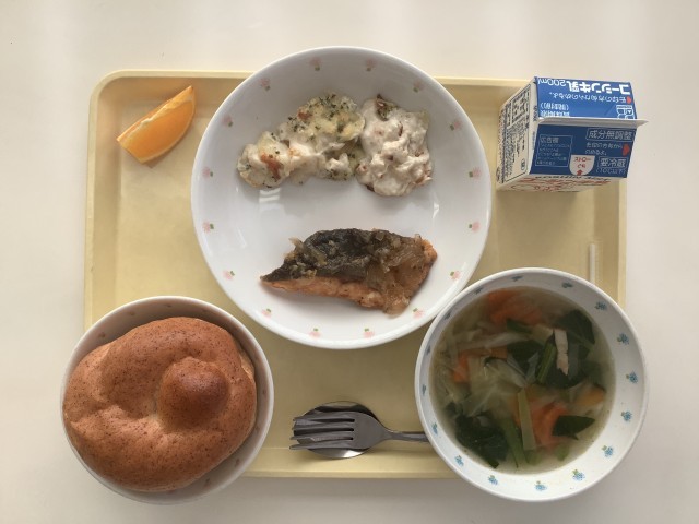 スウェーデンは、ヨーロッパの北部にある国で、首都ストックホルムは毎年ノーベル賞の授賞式が行われているところです。 今日の給食、「ヤンソン・フレステルセ」はスウェーデンの伝統的な家庭料理で、日本語では「ヤンソンさんの誘惑」と呼ばれています。じゃが芋、玉ねぎ、アンチョビにホワイトソースを合わせたグラタンです。