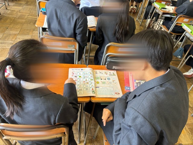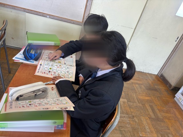 英語科では、ペアで指差しゲームを行いました。先生が英語の単語を伝え、その写真を指差すというものです。相手より早く見つけたい!と頑張っている姿が見られました。
