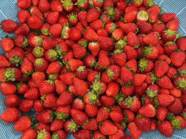 いちごは、栃木県産のとちおとめです。いちごの旬は5月中頃までなので、旬もそろそろ終わりになります。味わっていただきましょう🍓🍓