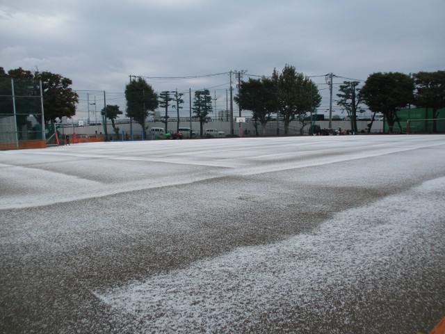 そんな今日、整備中の校庭には塩化カルシウムが撒かれていました。