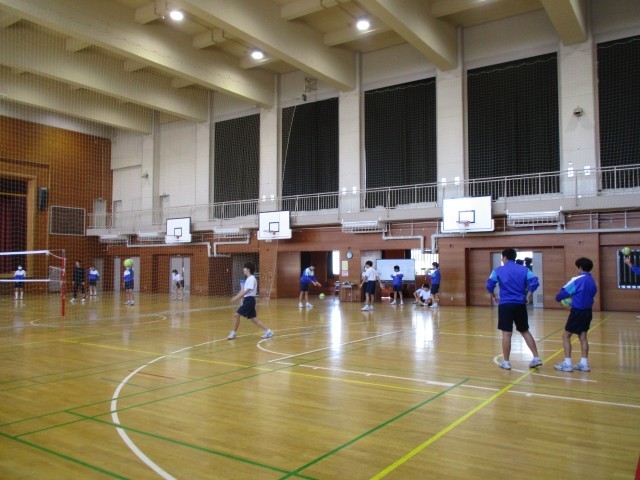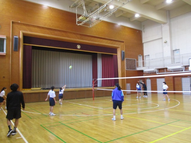 3年生の体育の授業では、生徒がバレーボールで汗を流していました。