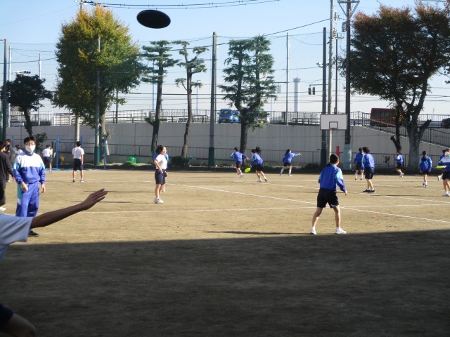 3年生の保健体育の授業ではフライングディスク競技に取り組んでいました。