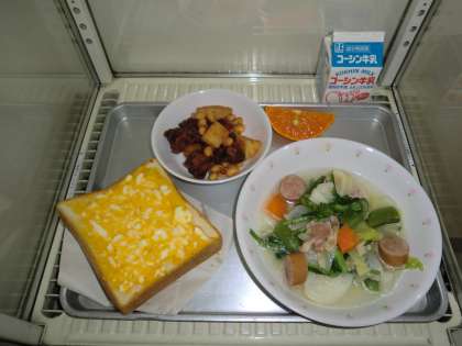 レバーと大豆、じゃが芋を揚げ、ケチャップ、ソース等