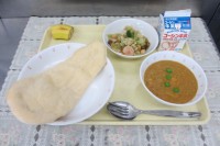 <焼きおにぎり(おかか・ごまみそ)・鶏肉と高野豆腐のピリ辛炒め・けんちん汁・巨峰・牛乳>