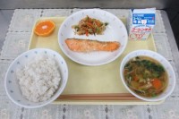 <きのこのカレーライス・シーフードサラダ・フルーツポンチ・牛乳>