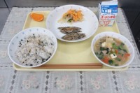 本日のメニュー菜の花ご飯牛乳あじのさんが焼きかぶと大根の浅漬けわかめのすまし汁い...