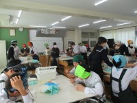 2年生の家庭科の授業は、調理実習で白玉団子を作っていました。白玉粉に水を入れ、こ...