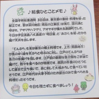 ※東京都の郷土料理や特産品を使った献立を出しました。
