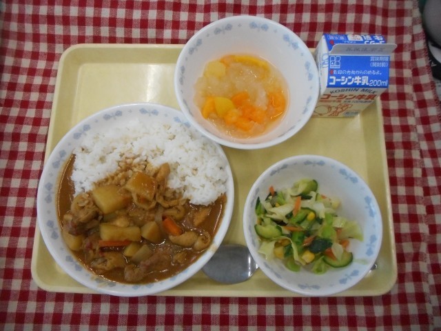今年度の給食は今日から始まりです。1年生はどのクラスもほぼ完食でした