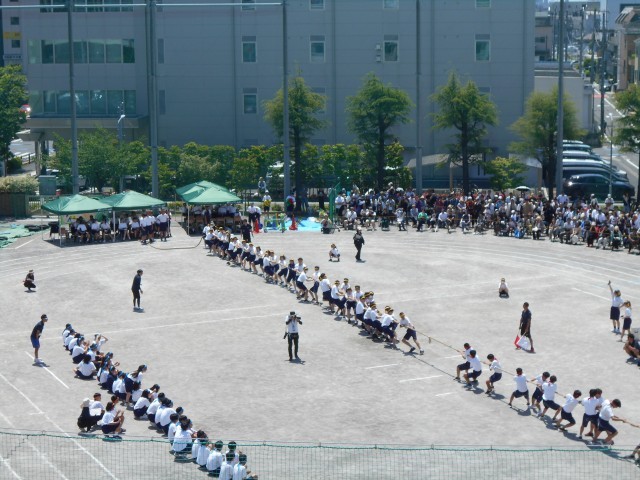 暑い中大勢の保護者の方・地域の皆様に御来校いただきました。声援を受け競技にも力が入ります。