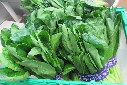 瑞江地区の小・中学校では同じ献立を提供しています。毎日、納品してくださっている小松菜農家さんからいつもより沢山の小松菜をいただきました。