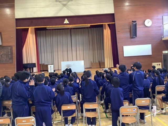 ④校時は講話で聴覚障がいのある方のお話を聞いたり、手話を教えていただいたりしました。