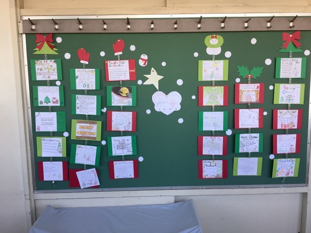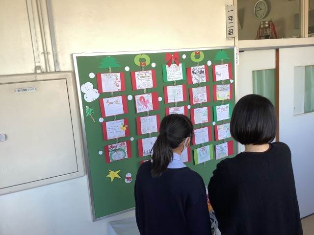 1年生は英語の授業でクリスマスカードに取り組みました。