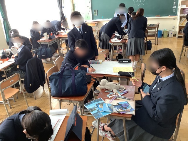 1学年では、都内巡りで発見した東京の良さをMAPにまとめています。都内巡りで高めたチームワークを発揮し、班で自分たちの学びを分かりやすく他者に伝える活動に取り組んでいます。
