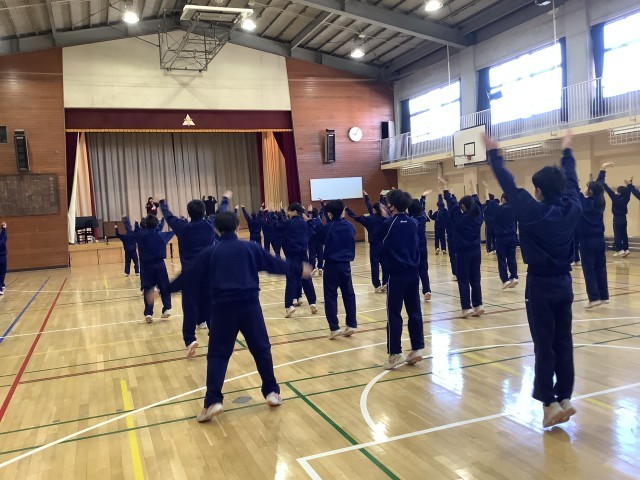 本日は体育の授業の一環で「ダンスチャレンジ」を行っています。EXILE、三代目 J SOUL BROTHERSなどが所属し、Love, Dream, Happinessを理念に掲げるエンタテインメント企業であるLDHから講師の方にご来校いただき、ダンスを教えていただきました。苦手な生徒も生き生きとダンスを楽しんでいました。