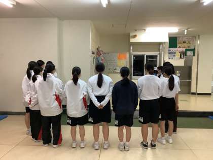 女子バスケットボール部のミーティング前の様子です。これから今日の練習の反省やバスケットボールや人間性など顧問から話してから下校となります。