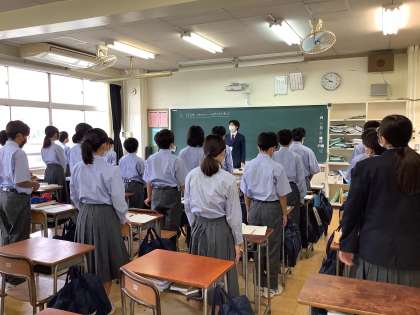 今日は教育実習生の研究授業の日です。実習生が所属している大学からも指導教官が来校され、「正負の数」について授業を行いました。実習も残りわずかです。将来の夢に向かって努力を継続して達成することを願っています。