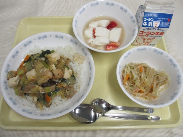 豆腐とえびとあさりのうま煮丼