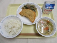 ・開花丼 ・小松菜の胡麻和え ・白玉小豆 ・牛乳