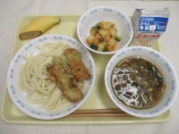 ・手作り小松菜パン ・ポークビーンズ ・小松菜の彩りサラダ ・バナナ ・牛乳