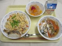 献立 ポークカレー 牛乳 ツナコーンサラダ フルーツポンチ