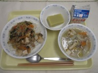 ごはんわかめそぼろ牛乳きびなごのから揚げ生揚げの甘辛煮ハリハリ和え