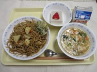 ごはん牛乳ししゃものごま揚げひじきとツナの和え物けんちん汁りんご