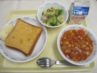 マヨコーントースト牛乳花野菜のシチューアーモンドマカロニサラダみかん