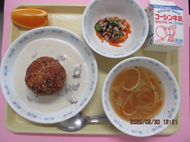 今日はイタリア料理の1つ、ライスコロッケを作りました。小さなオレンジを意味する「アランチーニ」とも呼ばれます。中にチーズを入れ、1つ1つ手作業で作りました。調理師の方のビタミン愛もたっぷりでした。豪快にホワイトソースをかけるクラスもあれば、写真のように、丁寧に盛り付けたり、個性が光っていました。ボリューム満点でしたが、ほとんどのクラスで完食。満足感いっぱいだったようです。