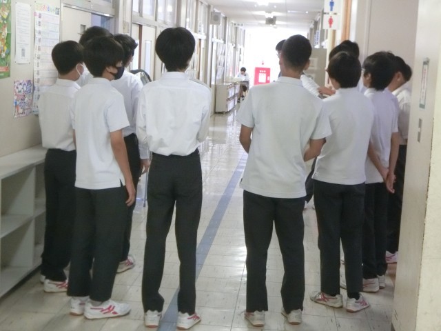 合唱コンクールの経験のある上級生は教室や廊下でパートに分かれて練習を行っていました。