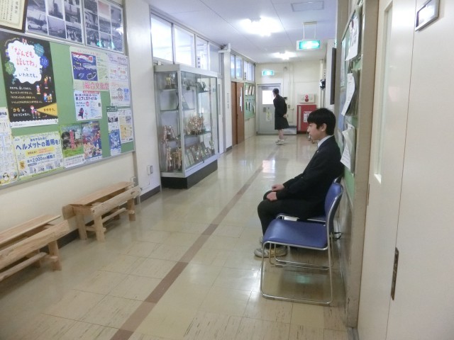 校長室、相談室に分かれ、入退室の動きと質問に対する受け答え、服装などを確認していただきました。